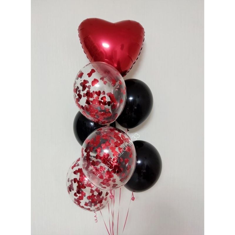 • Шар - ПАСТЕЛЬ - 3 шт., • Шар - КОНФЕТТИ - 3 шт., • Шар - СЕРДЦЕ - 1 шт. |