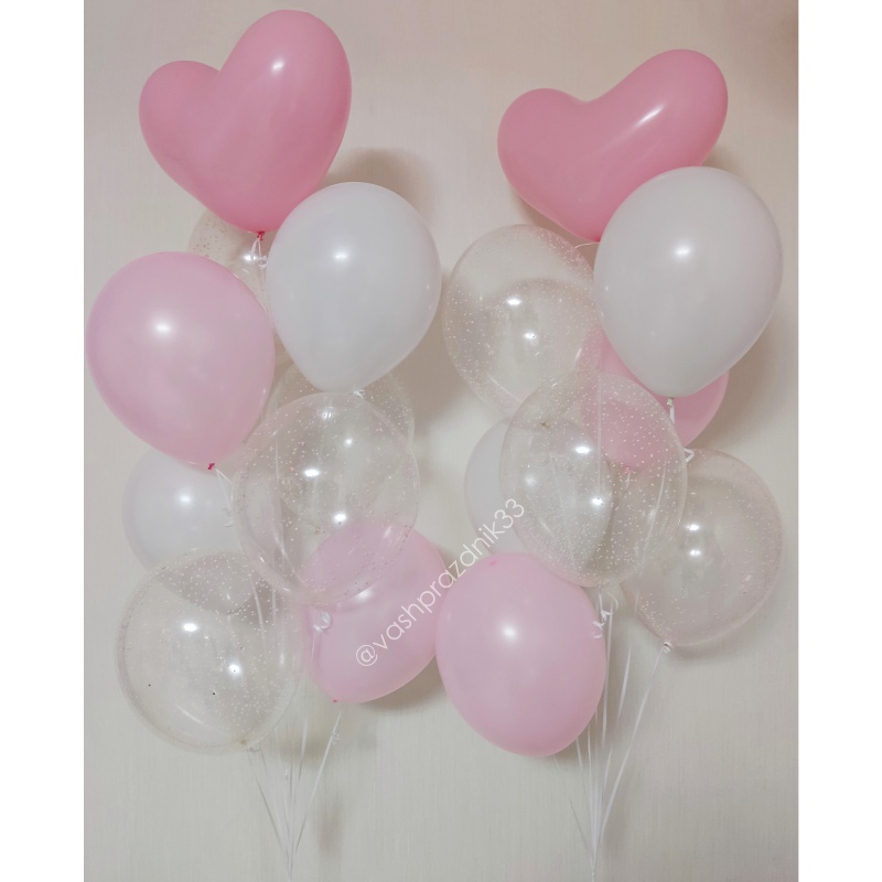 • Шар - ПАСТЕЛЬ - 4 шт., • Шар - КОНФЕТТИ - 4 шт., • Шар - ЛАТЕКСНОЕ СЕРДЦЕ - 1 шт. |
