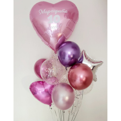 • Шар - ХРОМ - 4 шт., • Шар - КОНФЕТТИ - 5 шт., • Шар - СЕРДЦЕ - 1 шт., • Шар - ЗВЕЗДА - 1 шт., • Шар - БОЛЬШОЕ СЕРДЦЕ С НАДПИСЬЮ - 1 шт. |